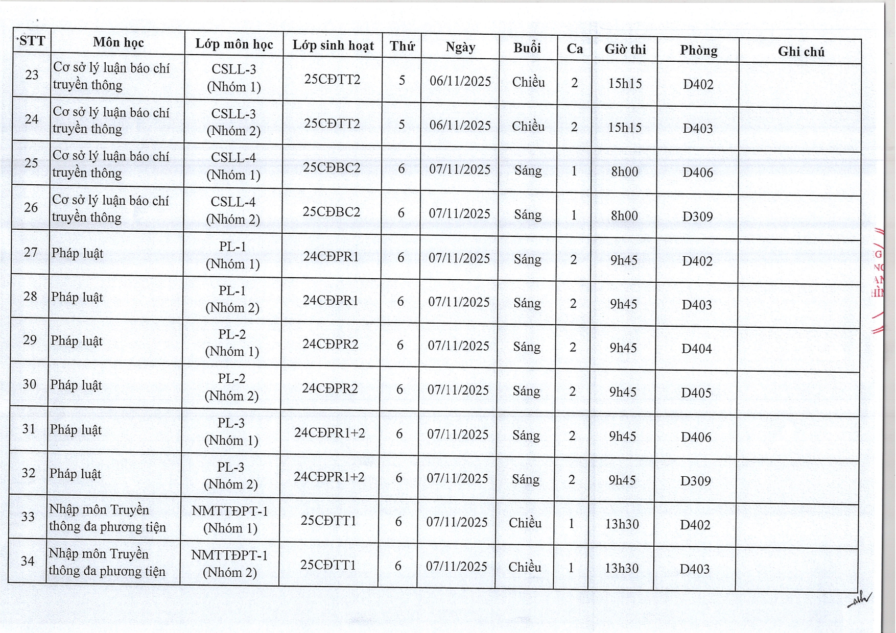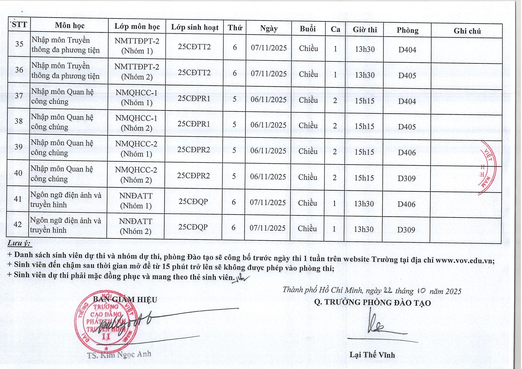 Lịch thi kết thúc môn học học kỳ I, năm học 2025-2026 (Đợt 1)