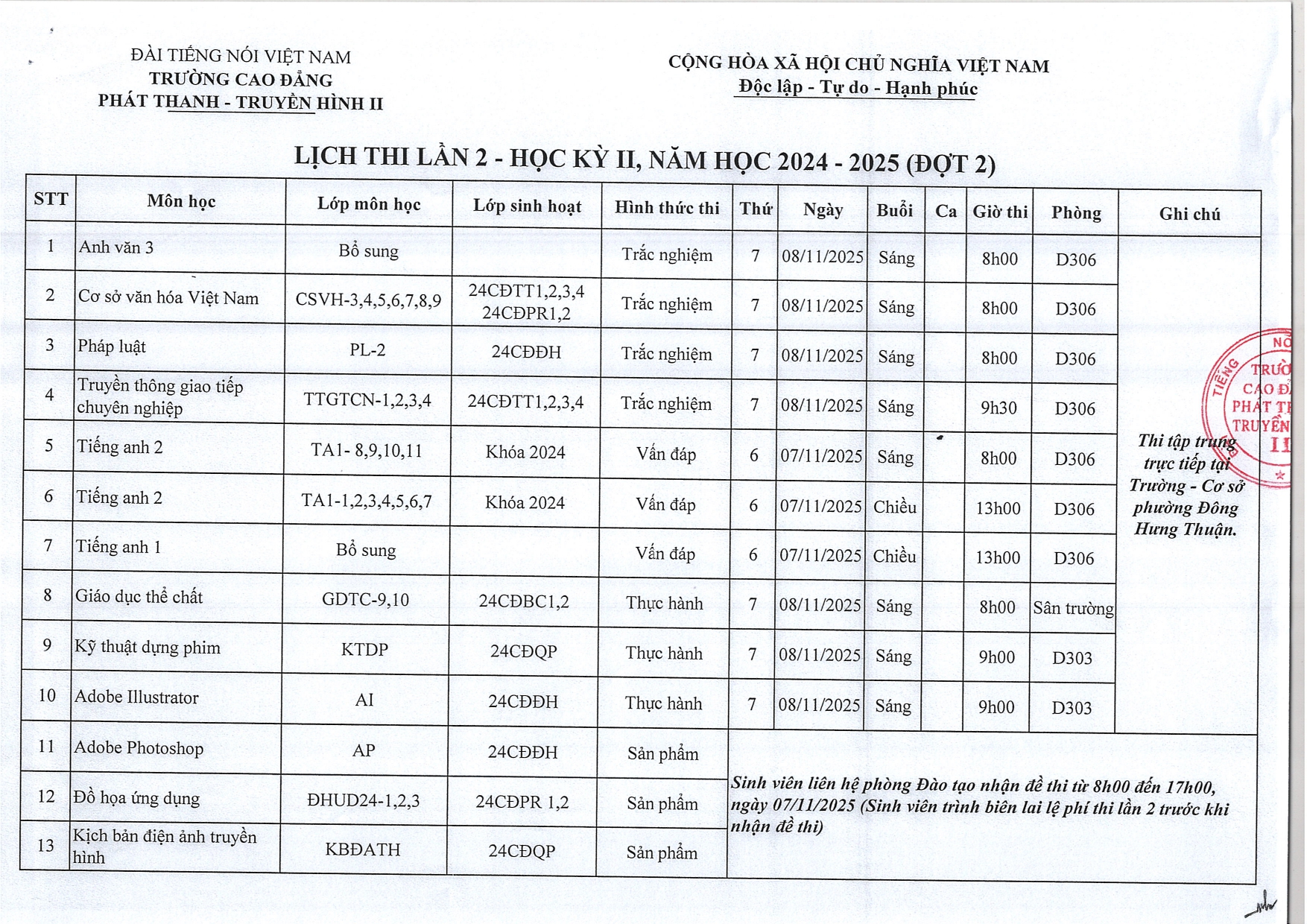 Lịch thi và danh sách dự thi học kỳ II, năm học 2024-2025 (Đợt 2)