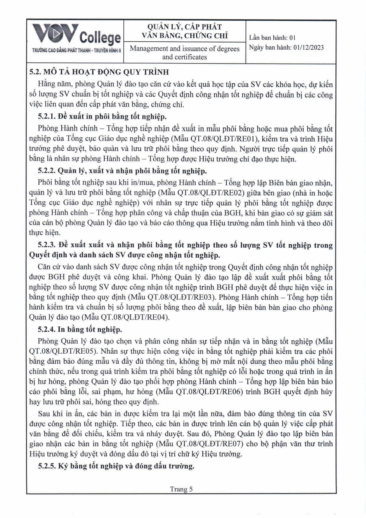 - Quy trình quản lý, cấp phát văn bằng, chứng chỉ (Tải về)